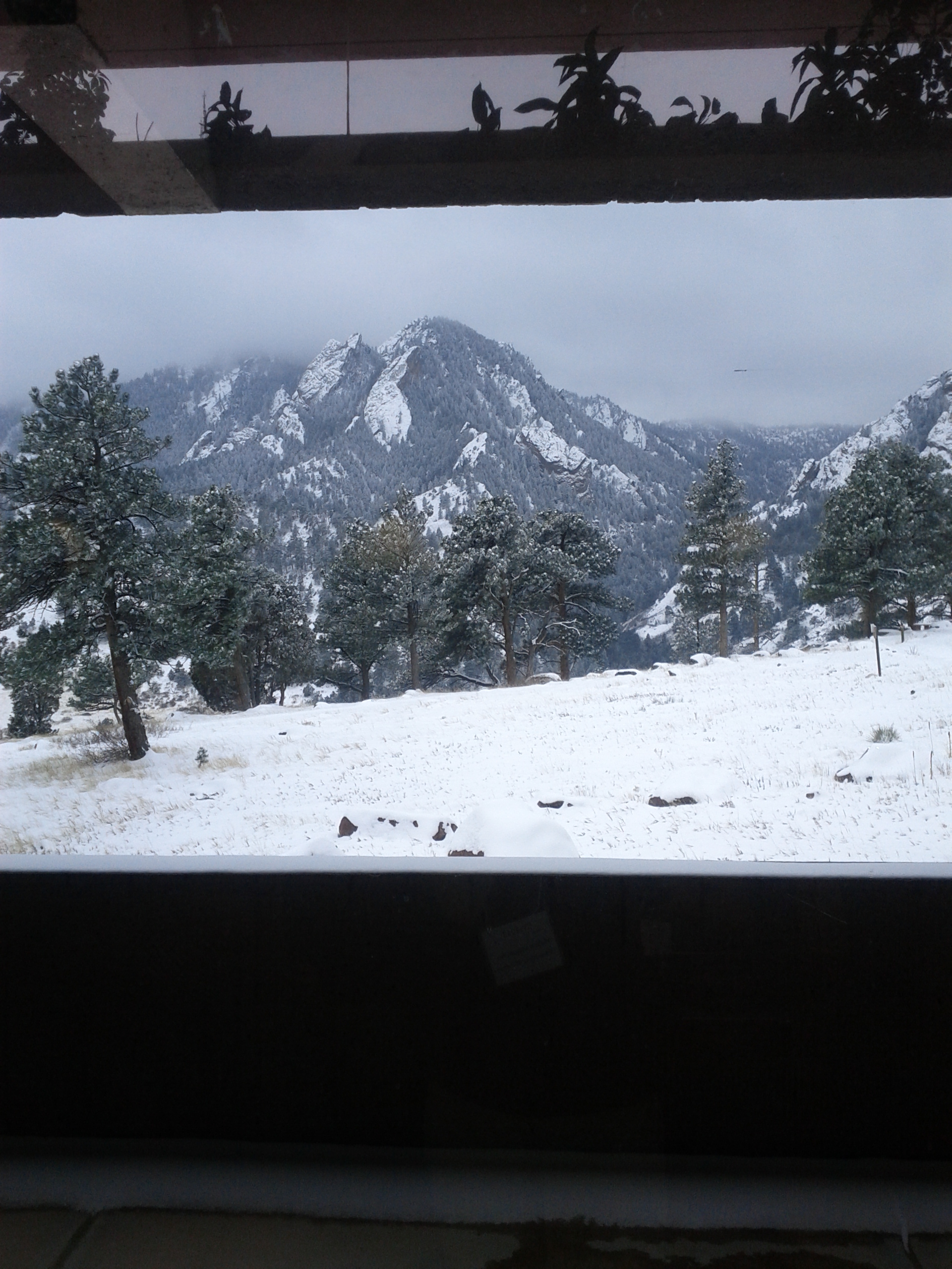Last week I was lucky enough to attend the Second Workshop on Coupling Technologies for Earth System Models, held at the National Center for Atmospheric Research (NCAR) in Boulder, Colorado, USA. I was excited just to visit NCAR, which is one of the top climate research facilities in the world. Not only is it packed full of interesting scientists and great museum displays, but it’s nestled in the Rocky Mountains and so the view from the conference room looks like this: